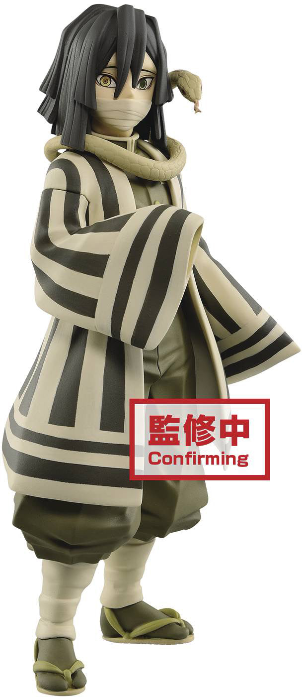 Description: From Banpresto. From the anime series Demon Slayer: Kimetsu no Yaiba comes a figure of Serpent Hashira of the Nine Pillars, Obanai Iguro! He stands about 8" tall and includes a base for display. .