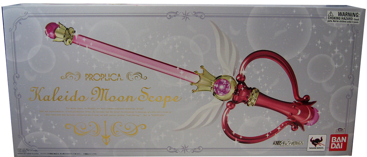 Description: From Tamashii Nations. The next Sailor Moon prop replica to be realized form the PROPLICA brand is the Kaleidomoon Scope from the Sailor Moon SuperS movie! Fans will know the Kaleidomoon Scope as the weapon Sailor Moon received from Pegasus. Like the other weapons in the series, the Kaleidomoon Scope not only has beautiful multi-color LED light features, but also original voice and sound effects! The size is an impressive 20 inches and will make an elegant statement to any collection. Requires 3 LR44 batteries sold separately.