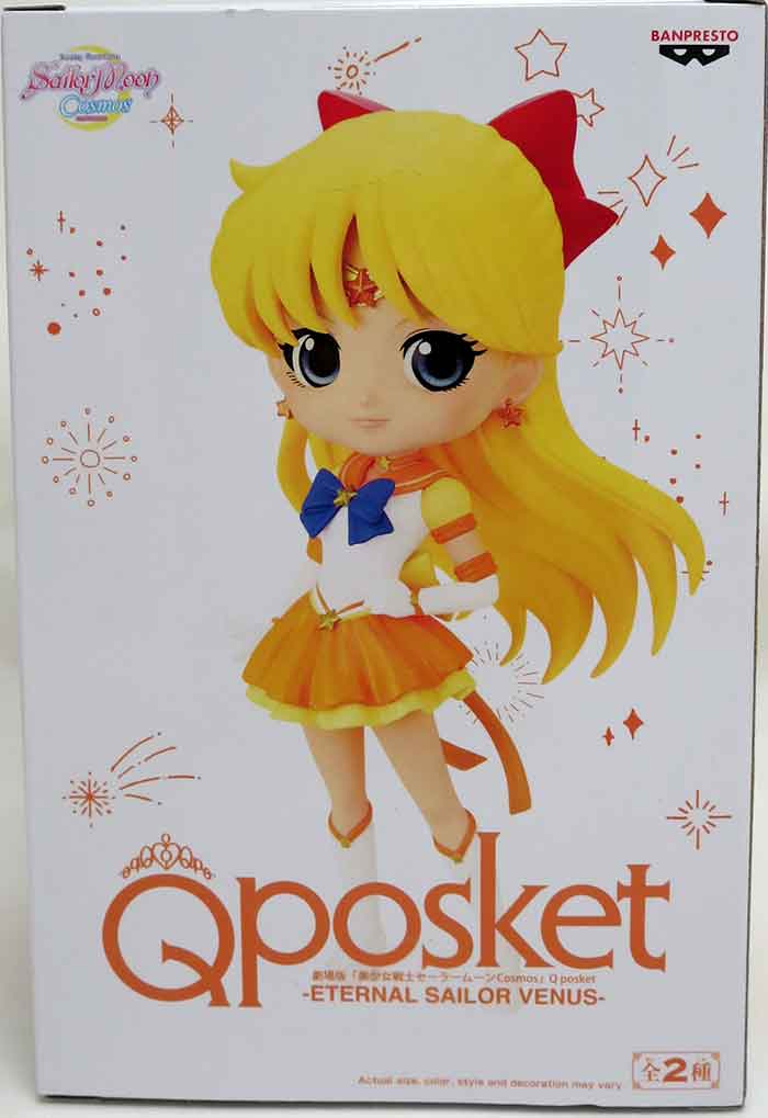 Description: Bandai Spirits Banpresto is proud to announce their newest release Eternal Sailor Venus (Ver. B)! Standing at approximately 5.5" tall, Sailor Venus is seen in their popular pose. Be sure to collect this and enhance your display with other incredible Q posket! Q posket is a collectible figurine line created by Banpresto. With glossy eyes and charming cheeks, the finest quality and meticulous design of all you favorite characters! .