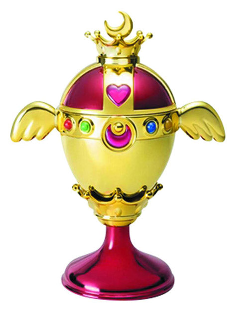 Description: From Tamashii Nations. Are you ready for your super transformation? From Proplica comes the Rainbow Moon Chalice, the grail that Sailor Moon used to transform into Super Sailor Moon in the anime! The Rainbow Moon Chalice plays the transformation melody as well as many other sounds including a homage to the original toy. Open the top and you will find the crystal inside lights up in various colors. The Chalice is recreated in beautiful detail and finished with high quality metallic, suitable for discerning adult collectors.