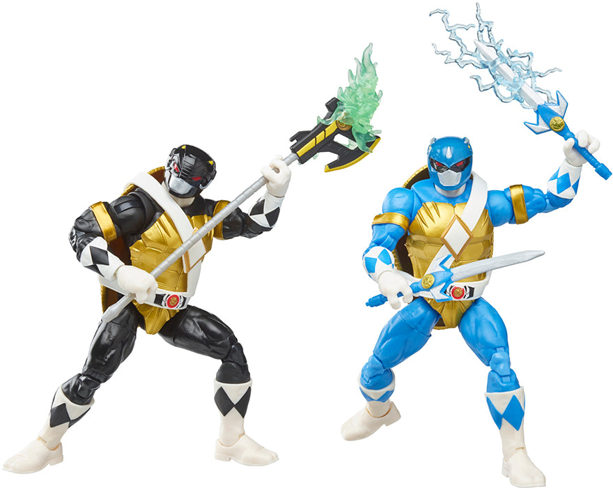 Description: This 6-inch Lightning Collection MMPR x TMNT Collab 2-pack features action figures with premium paint and decorative details inspired by the Boom! Comics crossover miniseries, with over 20 points of articulation in each figure for high poseability. Plus, swappable heads to display the Teenage Mutant Ninja Turtles with Ranger helmet or without. Also includes multiple character-inspired weapon accessories, blast effect pieces, and extra pairs of hands for more ways to play or display. . TMNT