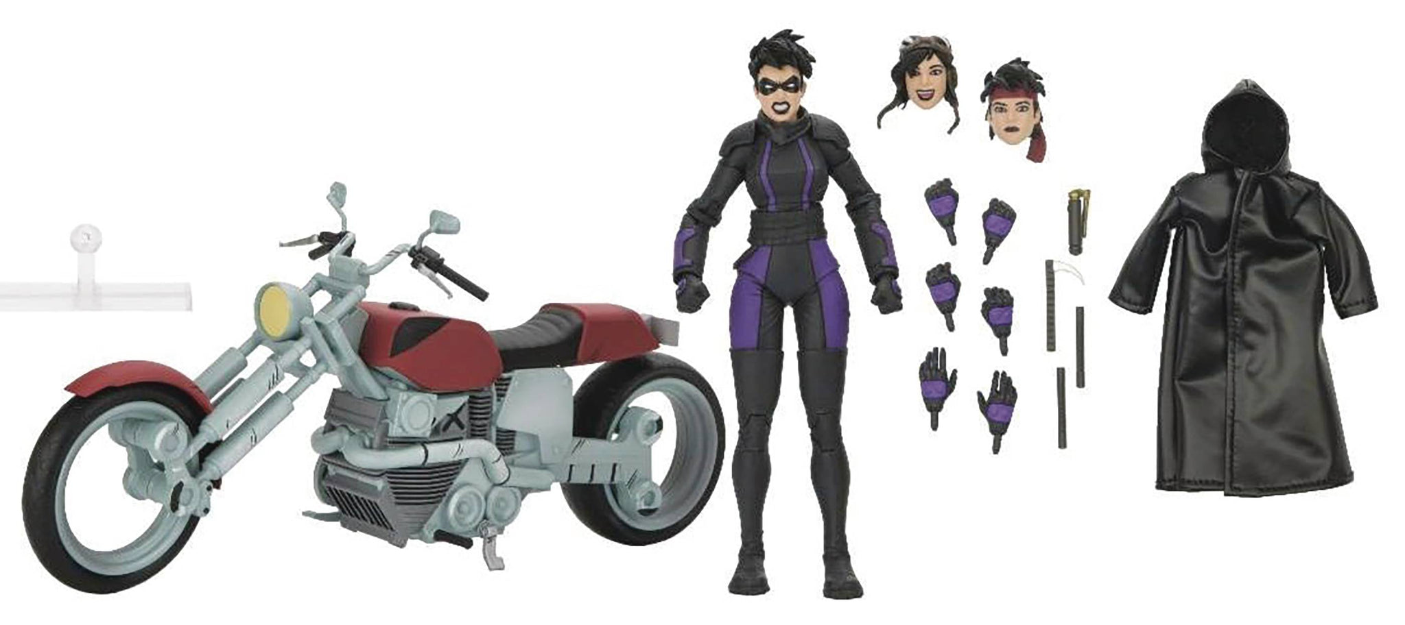 Description: From the Teenage Mutant Ninja Turtles comic book series, The Last Ronin! In a future NYC far different than the one we know today, a lone surviving Turtle goes on a seemingly hopeless mission to obtain justice for his fallen family and friends. Casey Marie, the headstrong daughter of Casey Jones and April O'Neil, is here as a NECA action figure! This 7-inch scale figure comes with a soft goods jacket and multiple heads based on her various looks in the comics. Her motorcycle even includes a dynamic posable stand! Comes in collector-friendly packaging with original artwork by The Last Ronin artist Ben Bishop..