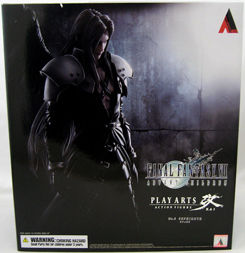 Description: From Square Enix. Entering the battlefield with his hair and clothing flowing behind him, Sephiroth cuts a figure combining delicate elegance and formidable strength. This imposing figure shows Sephiroth revived, radiating an overwhelming power from the Jenova cells within in his body. He exudes the dangerous air of a man who would try to bring about the destruction of the planet using the forbidden magic of Meteor. His shining silver hair is depicted using clear materials to give it a realistic translucence, while his eyes are finely colored to appear as if glowing with Mako energy. The single wing and katana Masamune accessories included in the package are also sculpted to the highest standards, with a diligent attention to detail and coloring. The quality of this figure is equal to that of Sephiroth's archrival Cloud in every way. Seeing them standing side-by-side is certain to immerse the viewer in the world of Final Fantasy VII once more ... Figure includes display stand and interchangeable hand parts