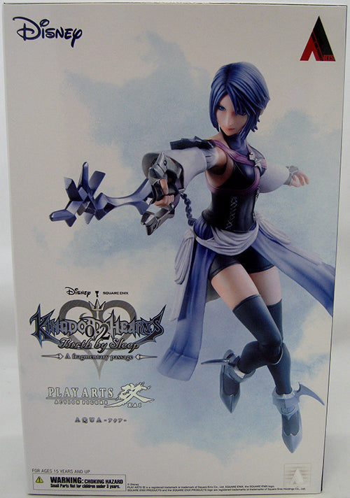 Description: From Square Enix. Aqua, the first female protagonist in the Kingdom Hearts series, has the inner fortitude to withstand adversity. This Play Arts -KAI- figure is sure to please as it showcases her unwavering spirit in its expression. The various included accessory parts allow for a multitude of action poses. The paintwork, varying calculated intensities of light and shadow, gives her a realistic presence, all while taking great care to show off of her signature blue color. We also aimed to give her armor and keyblade a heavy feel through the paint-applied metal textures. Whether she is charging gallantly into battle with Rainfell or showing her softer side in scenes with Terra and Ventus, we have condensed every bit of her charm into this figure to make it quintessentially Aqua.