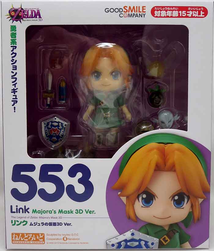Description: From the popular game 'The Legend of Zelda: Majora's Mask 3D' comes a Nendoroid of the young hero and main character of the game, Link! He comes with both his standard smiling expression as well as a shouting expression for combat poses! He also comes with an assortment of classic items from the game including the Kokiri Sword, Hero's Shield, Red Potion and Bunny Hood! He also comes with special key items from Majora's Mask including the Deku Mask, Goron Mask and Zora Mask, and Link's fairy companion Tatl is also included to fly by his side and give advice. Even the evil Majora's Mask itself is included and can even be worn by Link! So many different optional parts to really bring out the legendary world of Zelda in Nendoroid size! .