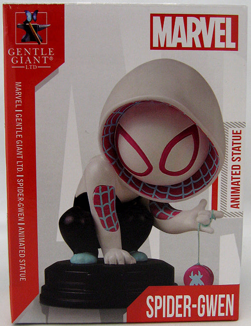 Description: Gentle Giant announces the next in their animated series, Marvel's most adorable arachnid, Spider-Gwen! This version of Gwen Stacey, from an alternate earth, is based off of artwork found in the pages and covers of Marvel Comics. Practicing her Yo-Yo to pass the time, this Spider-Gwen collectible was digitally sculpted, and then printed out on state of the art 3D Systems printers. The prints were then used to create the prototypes needed to produce this fun filled statue of Spider-Gwen and continues Gentle Giant's ongoing line of Marvel Comics Characters in this animated style!