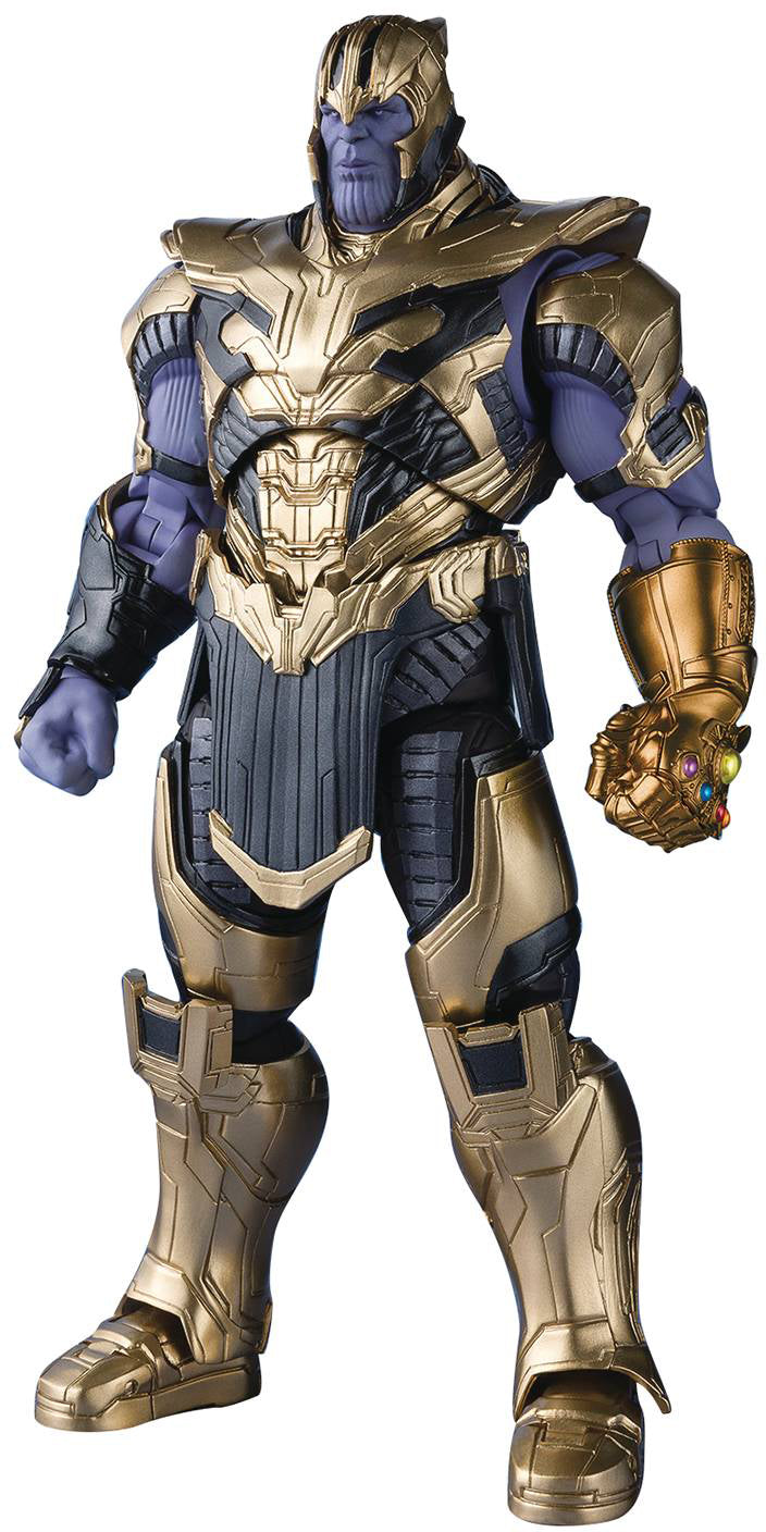 Description: The Dark Lord who menaces humanity's most powerful heroes joins S.H.Figuarts, featuring his appearance from the film Avengers: Endgame. He has been sculpted in a distinctively larger size so that you can feel his power in comparison to standard-sized characters. The set includes the figure, two pairs of optional hands, a weapon, and two optional face parts.