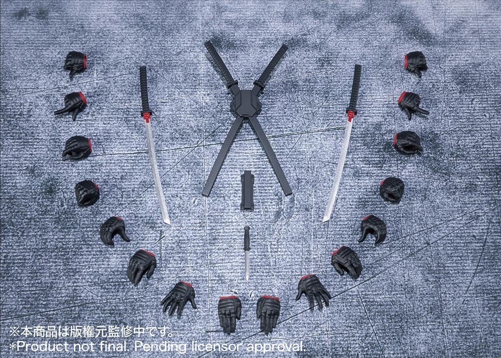 Description: Deadpool joins S.H.Figuarts! Sculpted in all of the detail you've come to expect from S.H.Figuarts, it includes numerous eye and hand parts that let you re-create your favorite moments from the film. Included are: Three pairs of optional eyes, eight pairs of optional hands, two swords, sword (stowed), knife, knife scabbard (empty), and an eye replacement tool. .