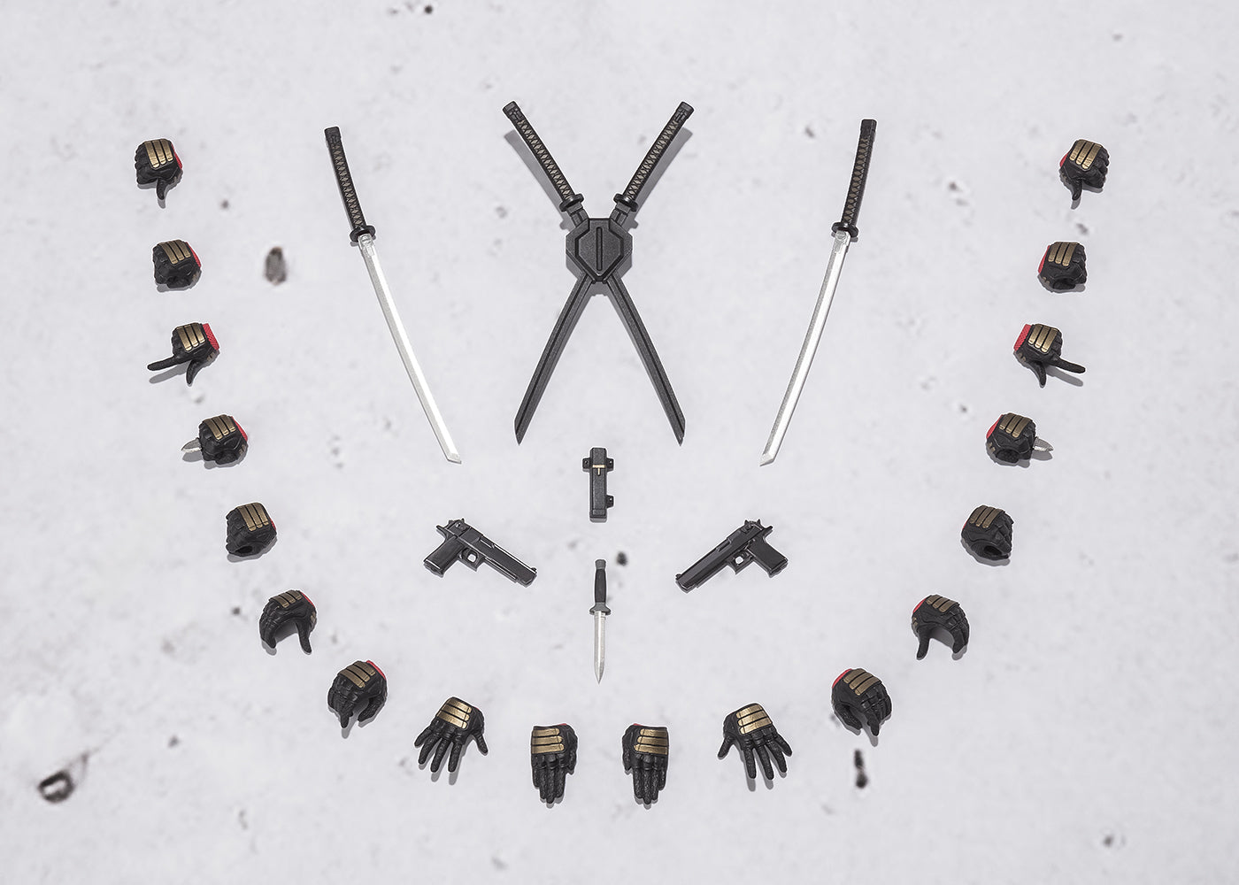 Description: Deadpool appears with a suit model and coloring updated to the design of this work. A wide variety of optional parts are included, allowing you to recreate Deadpool's character as you wish, including his brilliant actions and comical facial expressions. "Headpool" that appears in the work is also included! " [Bonus parts] Body, 9 types of replacement wrist parts left and right, Replacement eye parts left and right, 3 types each, Sword x 2, Sheath parts, Gun x 2, Holster x 2, knife, Knife case, Head pool, Head pool support parts.