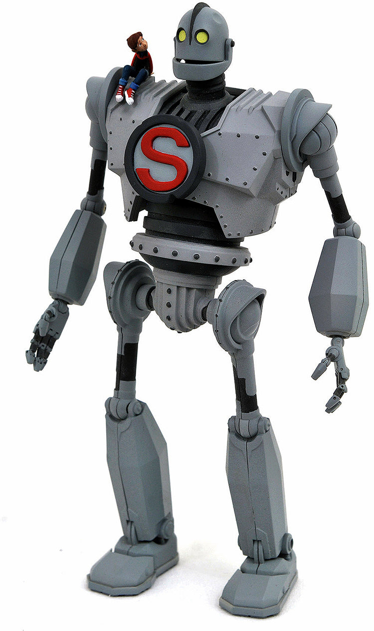Description: A Diamond Select Toys release! The Iron Giant has landed, and he's the newest Select action figure! Based on the classic 1999 animated film, this approximately 9-inch action figure features approximately 16 points of articulation, has light-up eyes, and features removable Hogarth Hughes and "S" Shield accessories! Packaged in display-ready Select action figure packaging, with side-panel artwork for shelf reference.