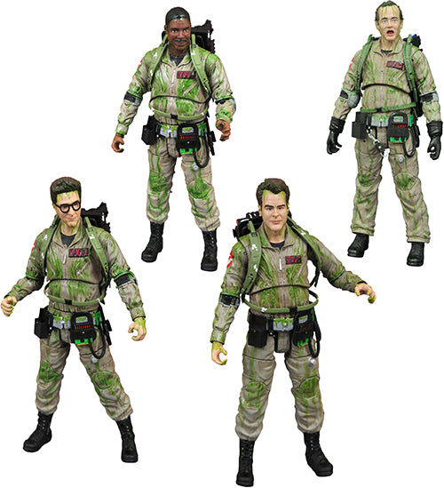 Description: They feel so funky! To celebrate the 35th anniversary of the classic horror-comedy Ghostbusters, Diamond Select Toys has created the ultimate movie collectible - the slimed action figure 4-pack! Featuring Peter, Ray, Egon and Winston in their slimed appearances, each action figure features approximately 16 points of articulation, as well as interchangeable hands, removable walkie-talkies and more. Packaged in a full-color window box with a fifth-panel door, this set is limited to only 1984 pieces! Designed by Yuri Tming, sculpted by Gentle Giant Studios. A Diamond Select Toys release!