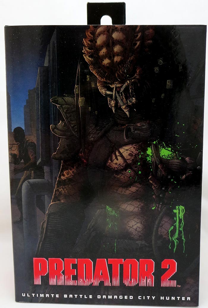 Description: 30 years after its release, NECA is celebrating Predator 2's anniversary with the release of the Ultimate Battle Damaged City Hunter. The figure stands approximately 8" tall with over 30 points of articulation and updated paint deco to reflect injuries suffered in his final bout against Lt. Mike Harrigan. Accessories include a detachable severed arm, open and closed smart discs, combi sticks, interchangeable hands, bio mask, and an all-new masked head sculpt. Comes in collector-friendly window box packaging..