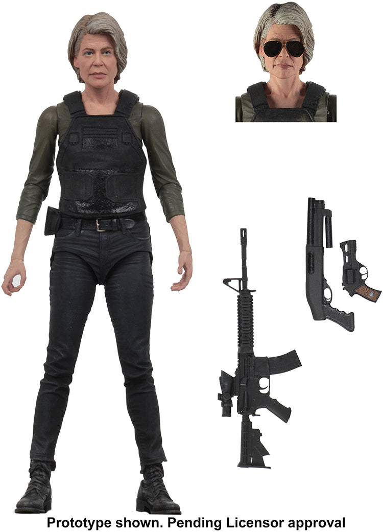 Description: From NECA. From the thrilling new installment in the legendary Terminator movie series! Terminator: Dark Fate follows the events of T2: Judgment Day as a new enemy appears. Sarah Connor is now a fully articulated 7" scale figure featuring movie-accurate detail and an authorized likeness. The figure comes with an alternate interchangeable head and a small arsenal of weaponry to battle against a deadly enemy.