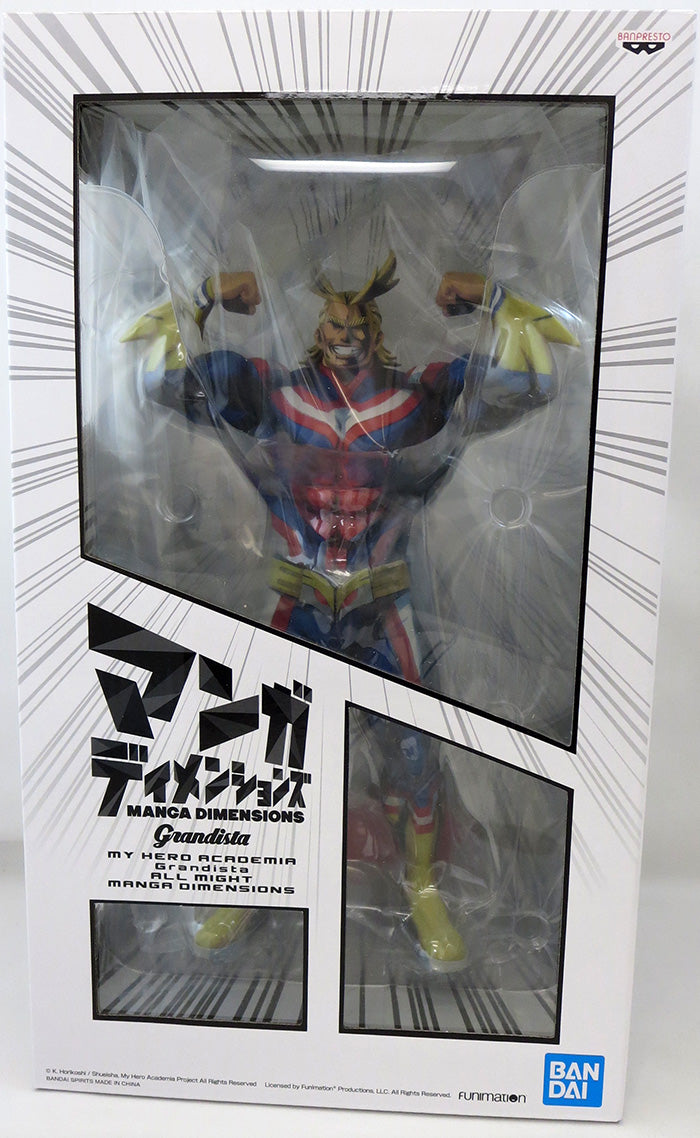 Description: From Banpresto. From popuar series My Hero Academia comes this officially licensed PVC statue In the Grandista line of All Might, now with a brand new Manga Dimensions finish! He stands a mighty 11" tall and comes in a printed box. Don't miss adding this mighty-sized All Might to your collection!