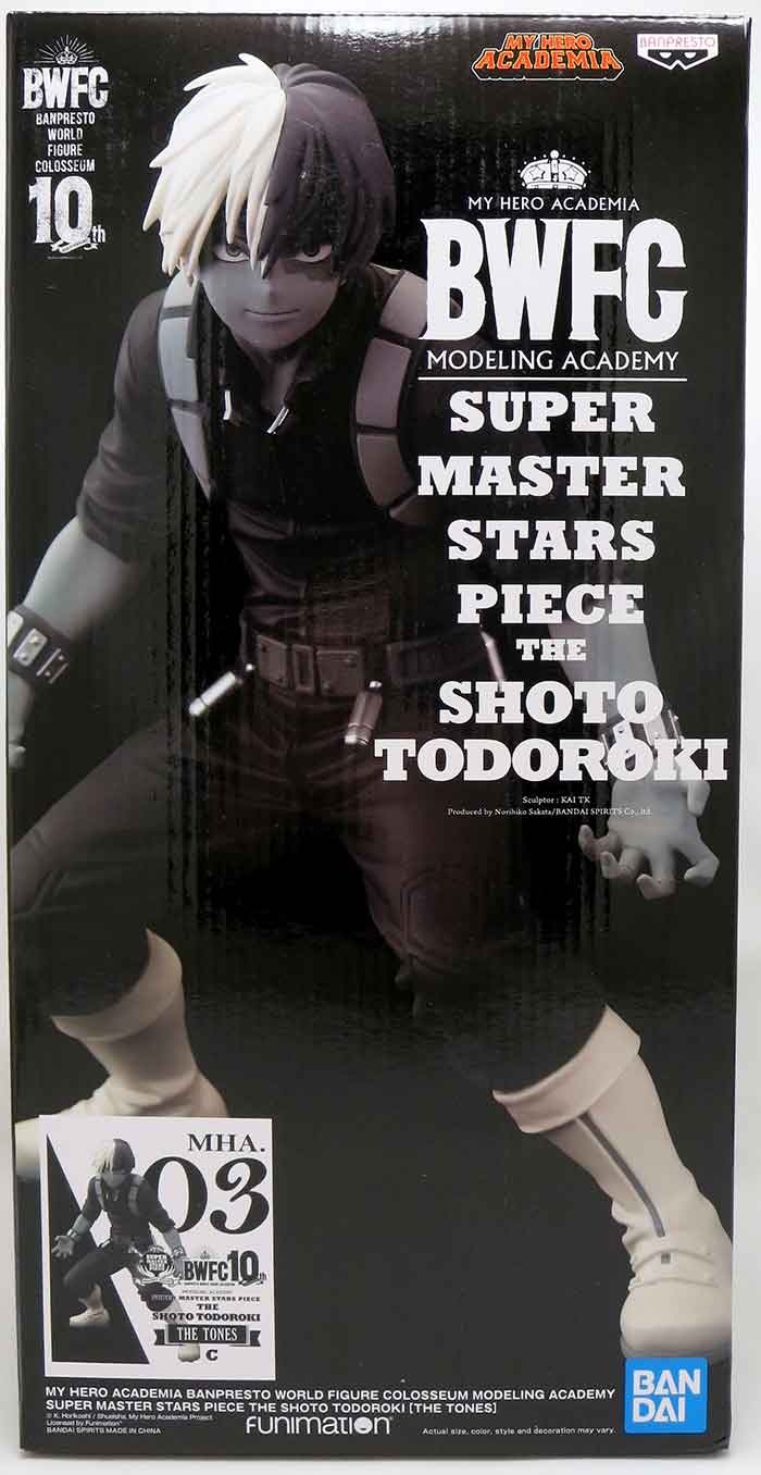 Description: From My Hero Academia, Shoto Todoroki joins the Super Maser Stars line from Banpresto! Standing about 8.5" tall, Todoroki is available in 4 different paint applications! Collect your favorite, or collect them all! .