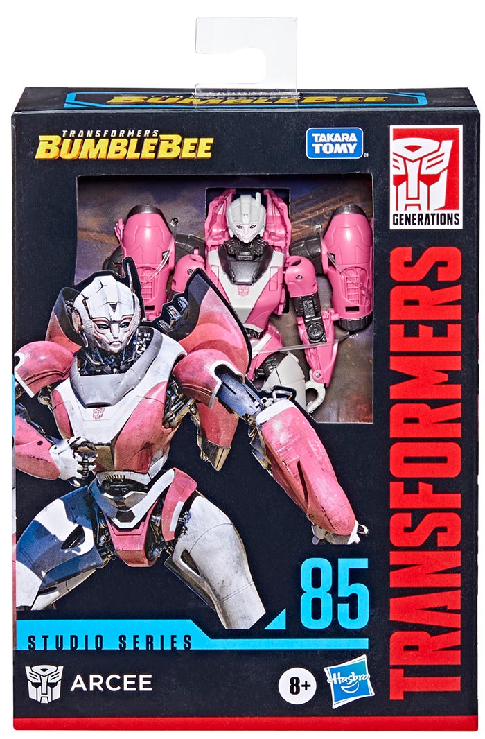 This Studio Series 85 Deluxe Class Transformers: Bumblebee-inspired Arcee figure converts from robot to Cybertronian motorcycle mode in 23 steps. Comes with 2 blaster accessories that attach in both modes. Remove backdrop to showcase Arcee toy in the Cybertron Falls scene. In the Cybertron Falls scene from Transformers: Bumblebee, Arcee loses contact with the capitol as the Autobots are overwhelmed by Decepticon forces. Pose the figure out with the included blaster accessories and imagine re-creating this classic movie moment!.