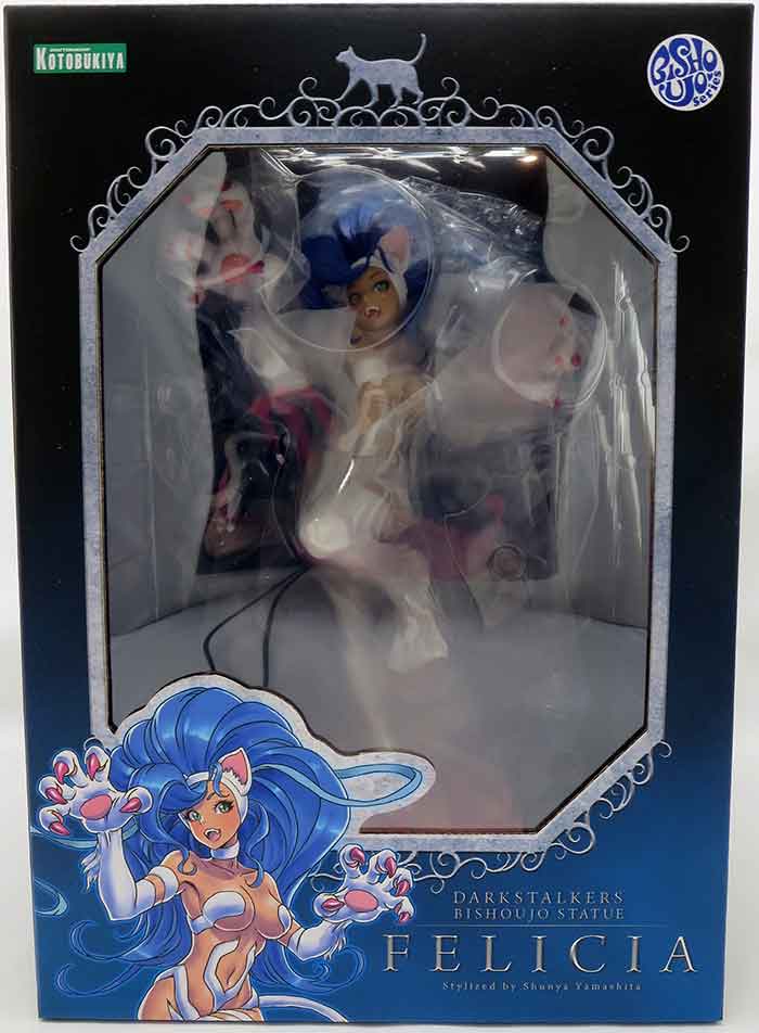 Description: Based on an original illustration by Shunya Yamashita, the innocent and overwhelmingly cheerful catwoman from Darkstalkers, Felicia joins the BISHOUJO series! Her squishy toe beans and fluffy fur show off the catwoman's cute side, while her toned muscles and the sharp claws give you a glimpse into her ferocious side. This detailed statue perfectly captures the character's duality, and the cute pink base also resembles a game stage. In addition to the usual BISHOUJO charm, this statue is a unique piece that is both adorable and deadly..