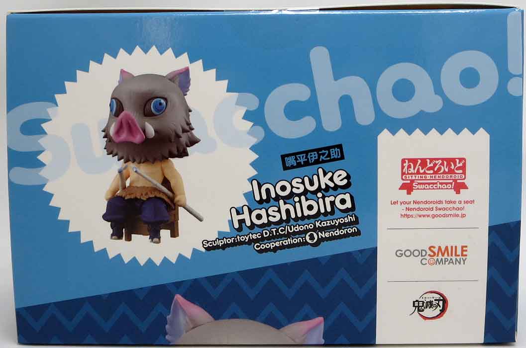 Description: Inosuke Hashibira from Demon Slayer: Kimetsu no Yaiba is joining the new Nendoroid Swacchao! series! Nendoroid Swacchao! figures feature a Nendoroid sitting in a chair, making it easy to display them on desks, shelves or areas tight on space! The figures can even be displayed on the edges of your desk or shelf, so enjoy collecting and displaying them everywhere!.