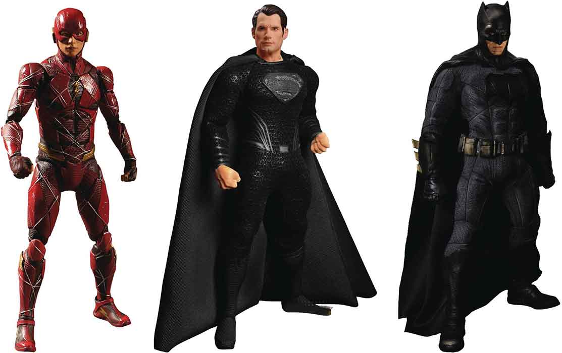 Description: Honoring director Zack Snyder's opus vision of his film Justice League, Mezco Toyz proudly presents Batman, Superman, and The Flash in this Deluxe Steel Boxed collector's set! All three heroes are newly outfitted as they are seen in Zack Snyder's Justice League. Superman wears his Kryptonian recovery suit in black with metal tones, and his outfit features a integrated posing wire in his cape for maximum display options. Batman is outfitted in an upgraded Batsuit with protection enhancements and energy absorbing gauntlets, and his leather like cape has a posing wire built into it as well. The Flash is protected in his specialty-made suit allowing the speedster to move at superhuman speeds without harm. Each member features multiple new head portraits including a heat vision head for Superman and an unmasked Bruce Wayne portrait with the likeness of Ben Affleck. The Justice League DSB set comes complete with character-specific accessories including a Mother Box with light-up function and much more! Each One:12 Collective Zack Snyder's Justice League DSB set is packaged in a collectable tin box, designed with collectors in mind..
