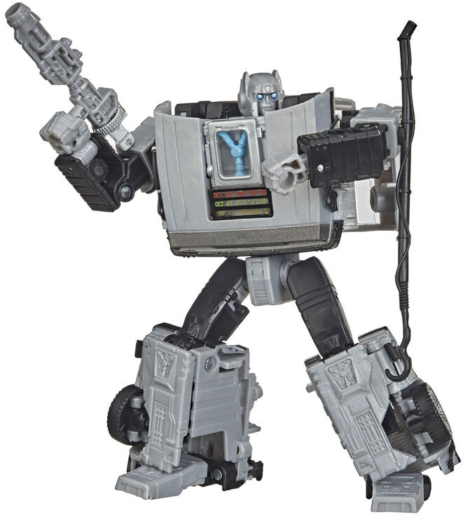 Description: Great Scott! Worlds collide in this Transformers-Back to the Future mash-up pack! The iconic time machine from the 1985 Back to the Future movie is now Gigawatt, a time-traveling Transformers robot! When Marty and Doc Brown need a ride through time, Gigawatt is ready to fly! This Gigawatt figure features movie-inspired details inspired by the Back to the Future film, including Doc Brown-style goggles, a flux capacitor chest piece, and time circuits. In time machine mode, the gullwing doors open and his wheels rotate to produce a hovering effect as seen onscreen. Also includes blaster and whip antennae accessories. Converts from robot to time machine mode in 17 steps..