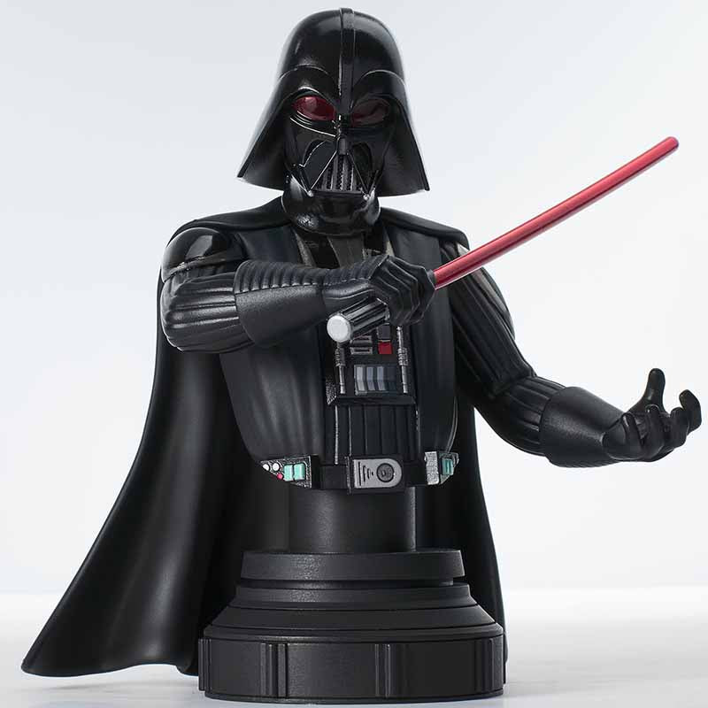 Description: A Gentle Giant Ltd. Release! Rebels beware! This all-new bust of Darth Vader, Dark Lord of the Sith, captures him as he appeared in the Rebels animated series, with his red-tinted lenses and red lightsaber activated. This deluxe 6-inch bust is limited to only 3,000 pieces, and comes packaged in a full-color window box with a numbered certificate of authenticity. Designed by Barry Bradfield, sculpted by Paul Harding!