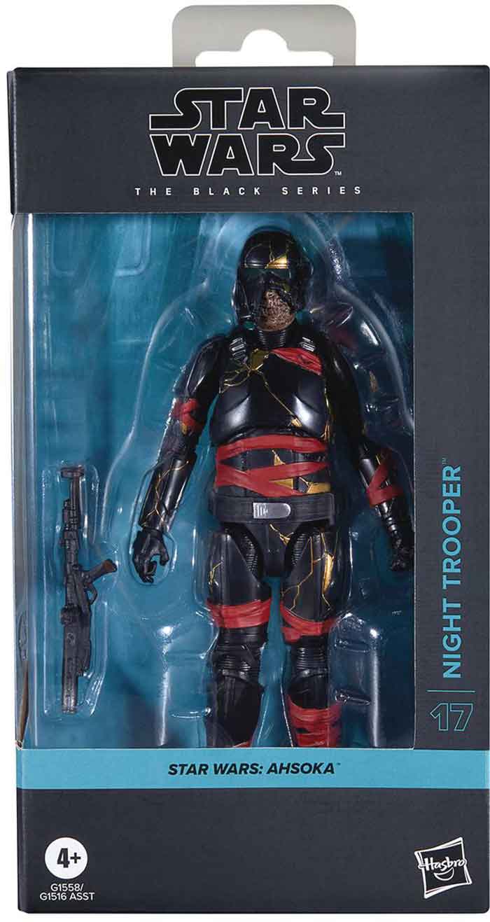 Description: Star Wars The Black Series includes 6 inch action figures, vehicles, and roleplay items from the 40-plus-year legacy of the Star Wars Galaxy, letting fans create galactic scenes with a faithfulness to Star Wars comic books, movies, series, and more. This Star Wars Hasbro action figure is detailed to look like a Night Trooper from Star Wars: Ahsoka. With exquisite features and decoration, The Black Series embodies the quality and realism that Star Wars devotees love. May the Force be with you! (Additional products each sold separately. Subject to availability.).