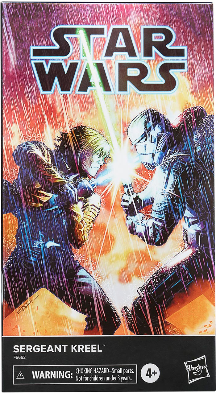 Description: SERGEANT KREEL: Sergeant Kreel, formerly undercover Agent 5241, serves as the leader of an elite group of SCAR troopers, Task Force 99, under the direct command of Darth Vader. STAR WARS: Fans and collectors can imagine scenes from the Star Wars Galaxy with this premium Sergeant Kreel toy, inspired by the Star Wars comic book COMIC BOOK-BASED CHARACTER-INSPIRED ACCESSORIES: This Star Wars The Black Series action figure comes with 2 entertainment-inspired accessories that make a great addition to any Star Wars collection FIND OTHER FIGURES FROM A GALAXY FAR, FAR AWAY: Find movie- and entertainment-inspired Star Wars The Black Series figures to build a Star Wars galaxy (Each sold separately. Subject to availability) PREMIUM ARTICULATION AND DETAILING: Star Wars fans and collectors can display this fully articulated figure featuring poseable head, arms, and legs, as well as premium deco, in their collection Sergeant Kreel, formerly undercover Agent 5241, serves as the leader of an elite group of SCAR troopers, Task Force 99, under the direct command of Darth Vader. The 6-inch-scale Black Series figure is detailed to look like the Sergeant Kreel character from Star Wars comic book, featuring premium detail and multiple points of articulation..