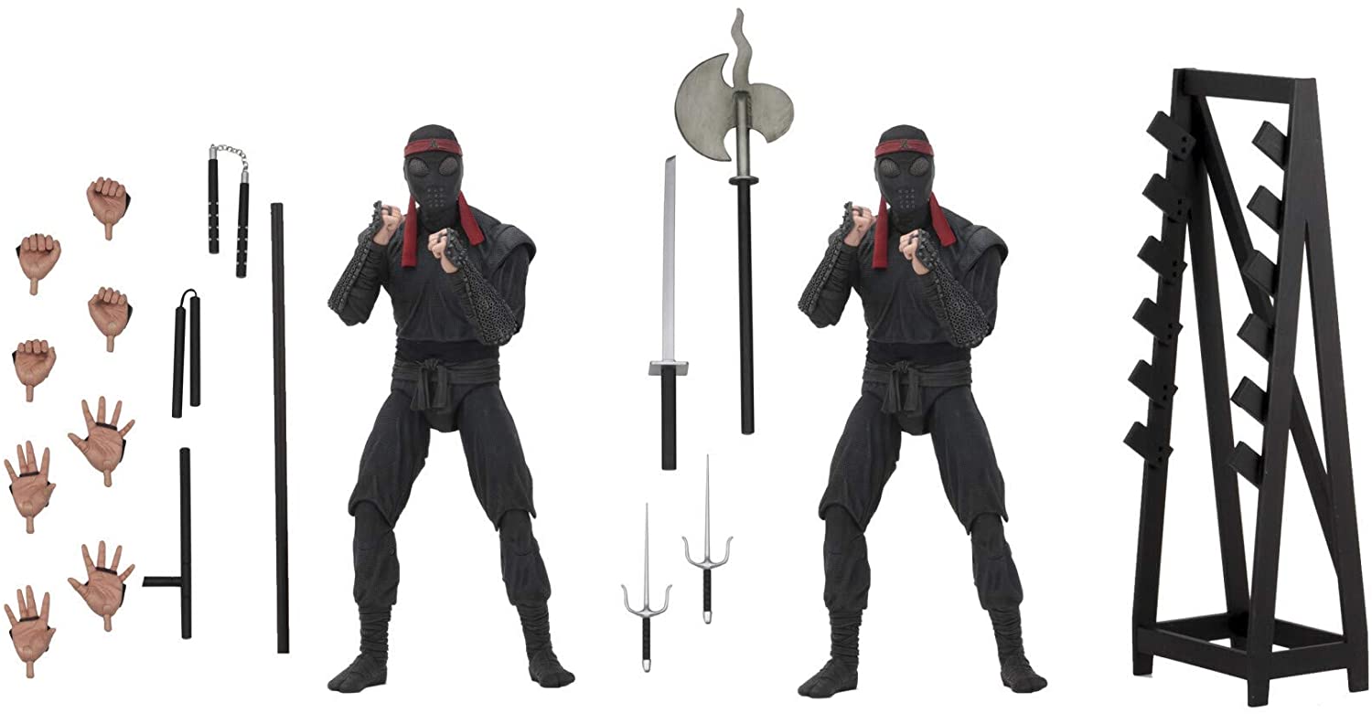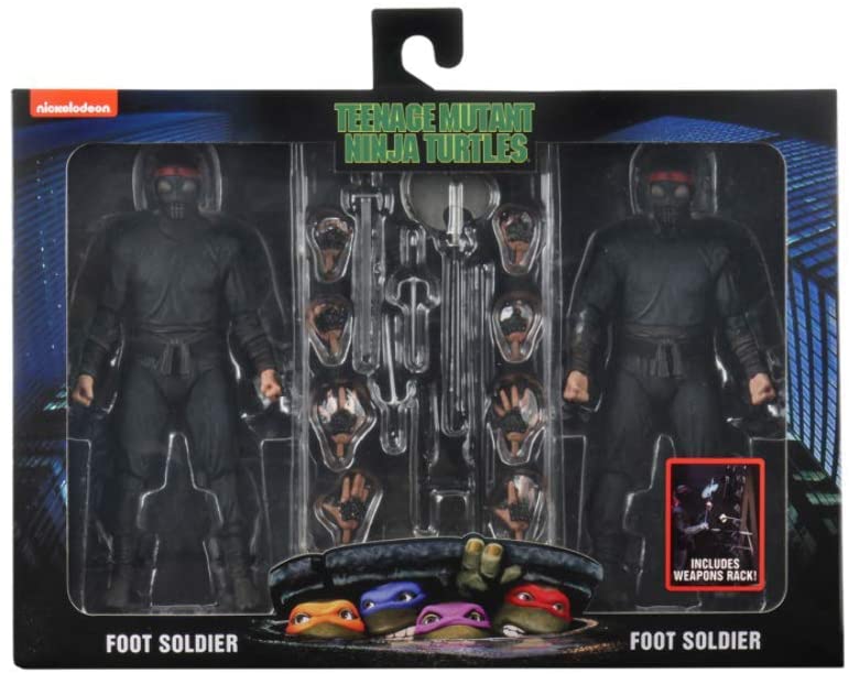 Description: From the 1990 Teenage Mutant Ninja Turtles movie! After wading in a puddle of radioactive waste, four radical reptiles were transformed into New York City’s greatest crime-fighting quartet! Their biggest foes are the Foot Clan, a criminal organization run by the mysterious Shredder. These 7" scale figures are super articulated, highly detailed and entirely accurate to the movie. Each 2-pack comes with signature weaponry and other accessories. Window box packaging.