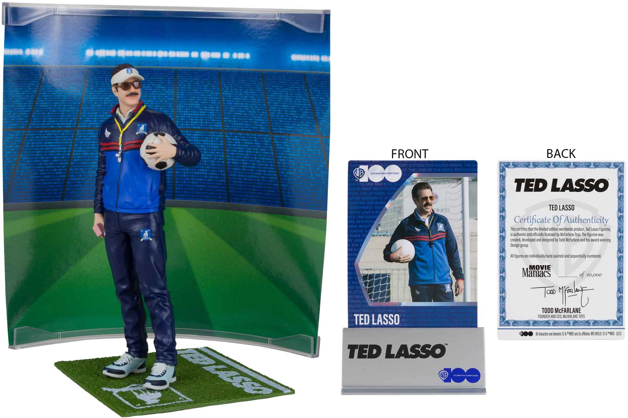 Description: Introducing Movie Maniacs! These incredibly detailed, limited edition 6" scale figures includes a scenic printed back drop and environmental base display along with an art card with numbered certificate of authenticity. Figure is showcased in WB100 Anniversary themed window box packaging, and includes a hidden surprise item! Be sure to collect them all! Movie Maniacs: Ted Lasso is limited to an edition of 20,000. .