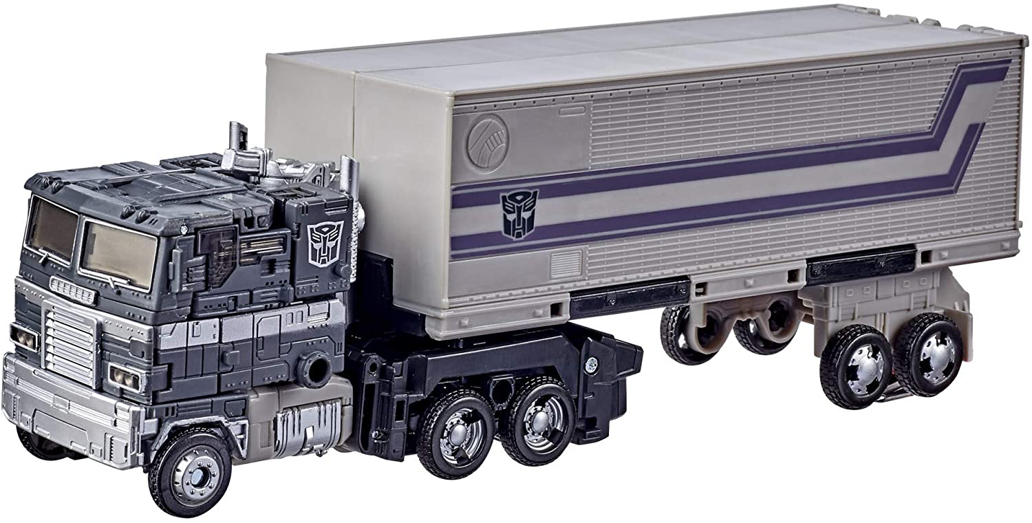Description: The legendary Autobot leader faces every challenge with wisdom and bravery. Including his own death. This pack comes with a grayscale Optimus Prime figure, inspired by his appearance as he drains of color and dies in the 1986 film Transformers: The Movie. The Matrix of Leadership, in full color, fits inside his chest so fans can imagine Optimus Prime removing the still vibrant Matrix of Leadership from his chest and passing it on to Ultra Magnus. The figure converts between robot and truck modes in 35 steps. Imagine laying Optimus Prime to rest in the converted truck trailer. The figure also comes with an Ion Blaster, but in this state, it's likely he won't need it. Transformers and all related characters are trademarks of Hasbro.