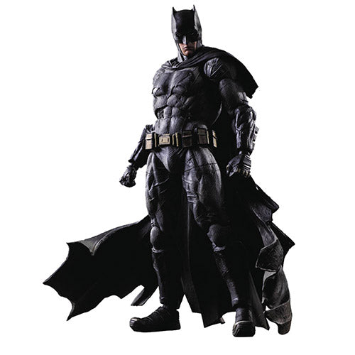 Description: From Square Enix. Batman v Superman: Dawn of Justice depicts the clash of two iconic heroes in the DC Comics universe. The difference between Batman as opposed to Superman, who has been heralded as the hope for mankind, is rendered through the roughness of the Batsuit and cape. In addition to the flexible materials used in various parts, rolling joints have been implemented in the upper arms and thighs for a wider range of mobility, allowing for improved poseability. From recreating the likeness of his face to the texture of his body and suit, there are fine details incorporated within the simplicity, and the paintwork makes the care that was put into the sculpting shine. This figure - which also includes the various signature gadgets that Batman carries in his arsenal, a display stand and interchangeable hand parts - exudes the image of a dark hero that stands against the light.