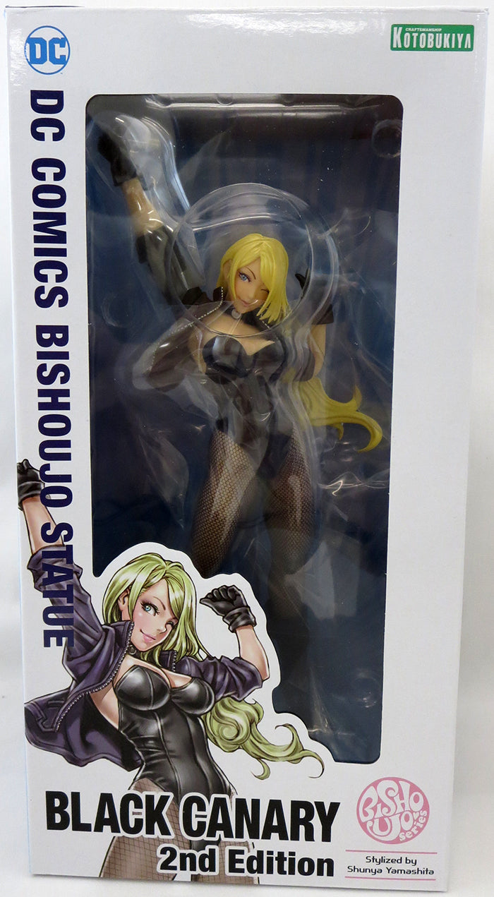 Description: From Kotobukiya. Star City's defender, the Black Canary, appears as rendered by Bishoujo series illustrator Shunya Yamashita! With a unique origin story as the second generation of a vigilante family to succeed her mother, Black Canary appears in this Bishoujo statue rendition showcasing her wild nature. Her base is designed to reflect the rippling ultrasonic waves due to her special ability! While this is a reproduction item, you can look forward to seeing a renewed base and package..