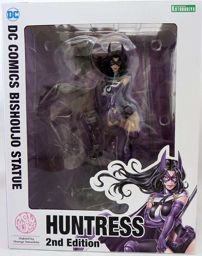 Description: From Kotobukiya. A refugee from Earth-2, Huntress is Helena Wayne, daughter of Bruce Wayne and the Robin of her world. No longer tied specifically to Gotham City, Huntress travels the world righting wrongs according to her own code of honor. Helena's alter ego is now presented in the Bishoujo style based on an original illustration by famed Japanese artist Shunya Yamashita. Standing 9 1/2" inches tall at 1/7 scale on an exclusive base. While this is a reproduction item, you can look forward to seeing a renewed base and package..