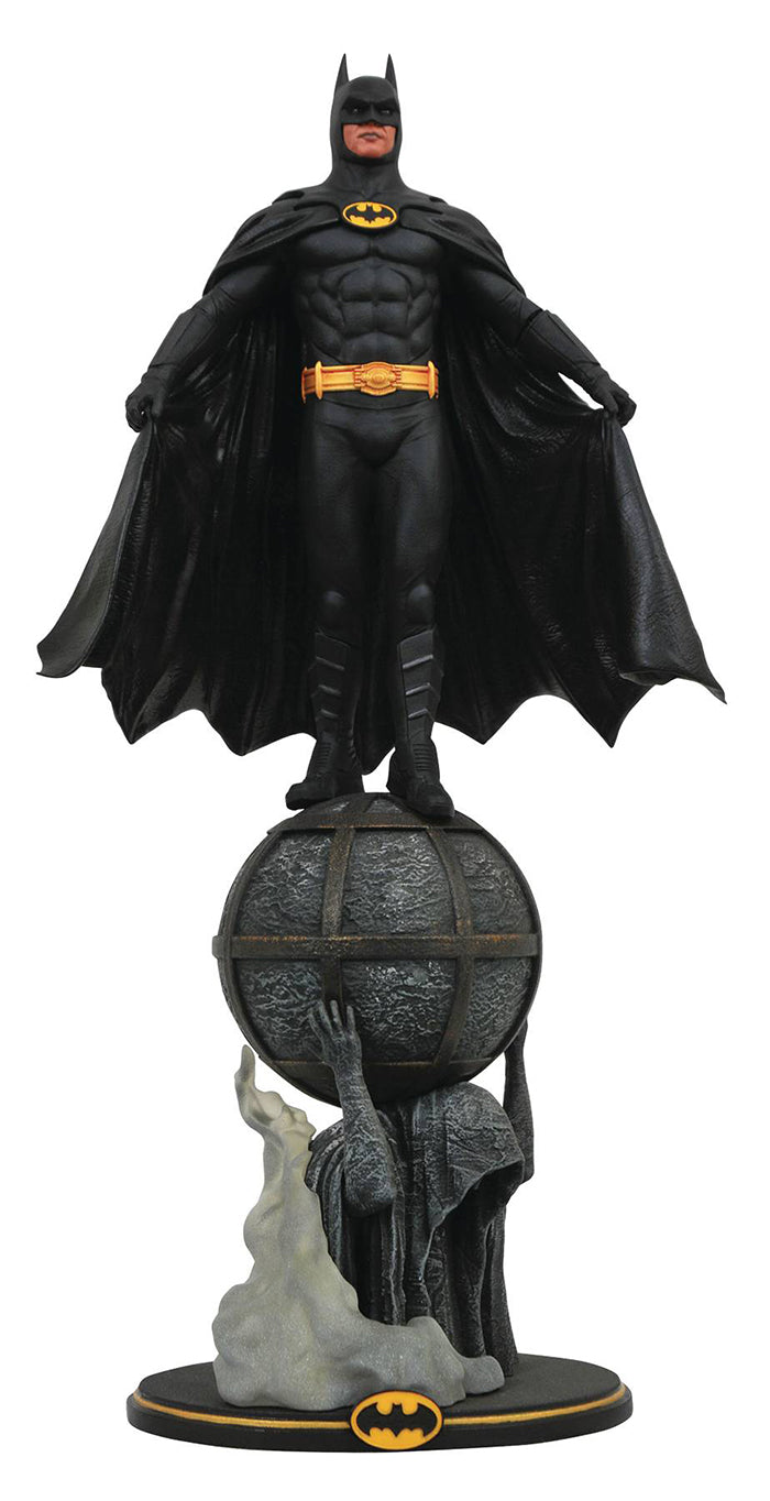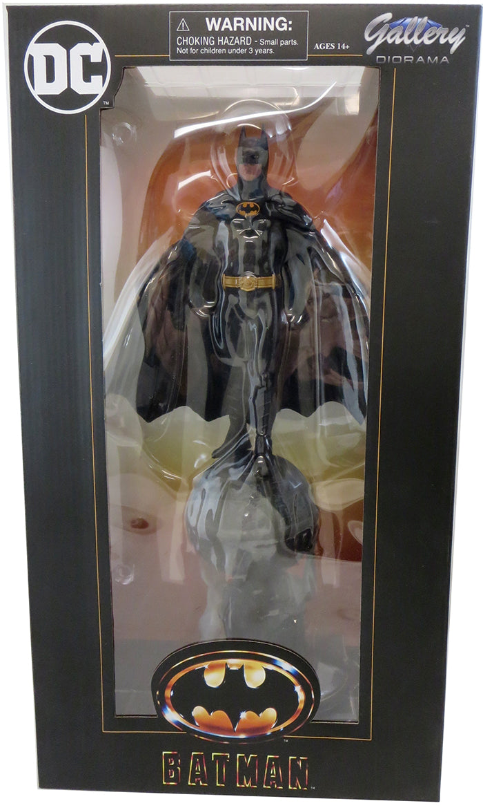 Description: A Diamond Select Toys release! One of the most iconic Batmen of all time takes the stage with this all-new Gallery Diorama of Batman from Tim Burton's 1989 movie Batman! Standing atop a distinctive piece of Gotham City architecture, Batman spreads his cape and prepares to dive on some unsuspecting evildoer. Measuring approximately 11 inches tall, this diorama is made of high-quality PVC and features detailed sculpting and paint applications. It comes packaged in a full-color window box. Designed by Shawn Knapp, sculpted by Rocco Tartamella..