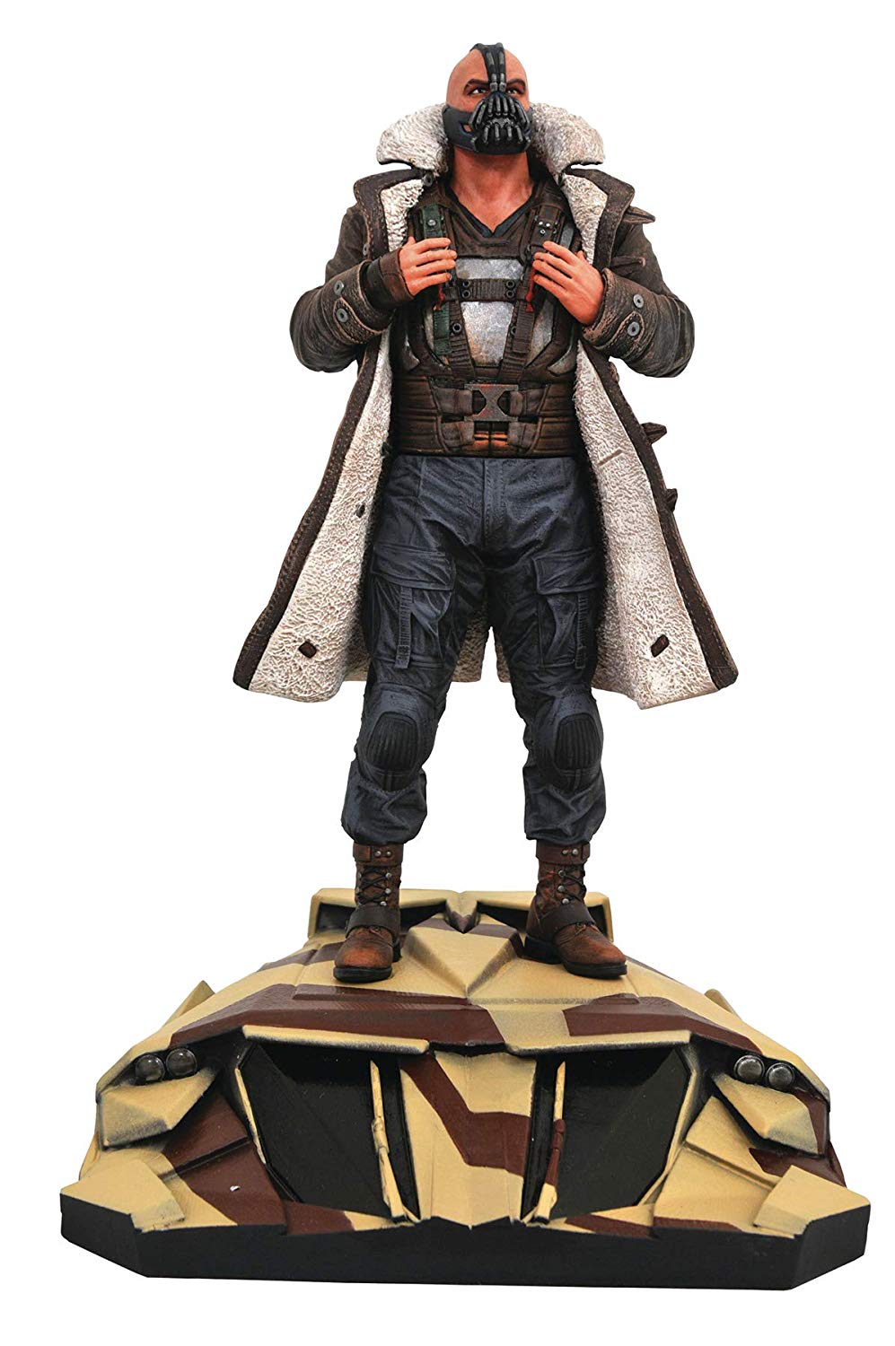 Description: A Diamond Select Toys release! Speak of the devil, and he shall appear! The conqueror of Gotham City stands triumphant in this new PVC diorama based on the Dark Knight Rises! Depicting Bane standing on the roof of his camouflage tumbler vehicle, this sculpture by Rocco Tartamella was based on a design by Shawn Knapp. The diorama stands approximately 11 inches tall, is made of high-grade plastic, features detailed paint applications, and comes packaged in a full-color window box.