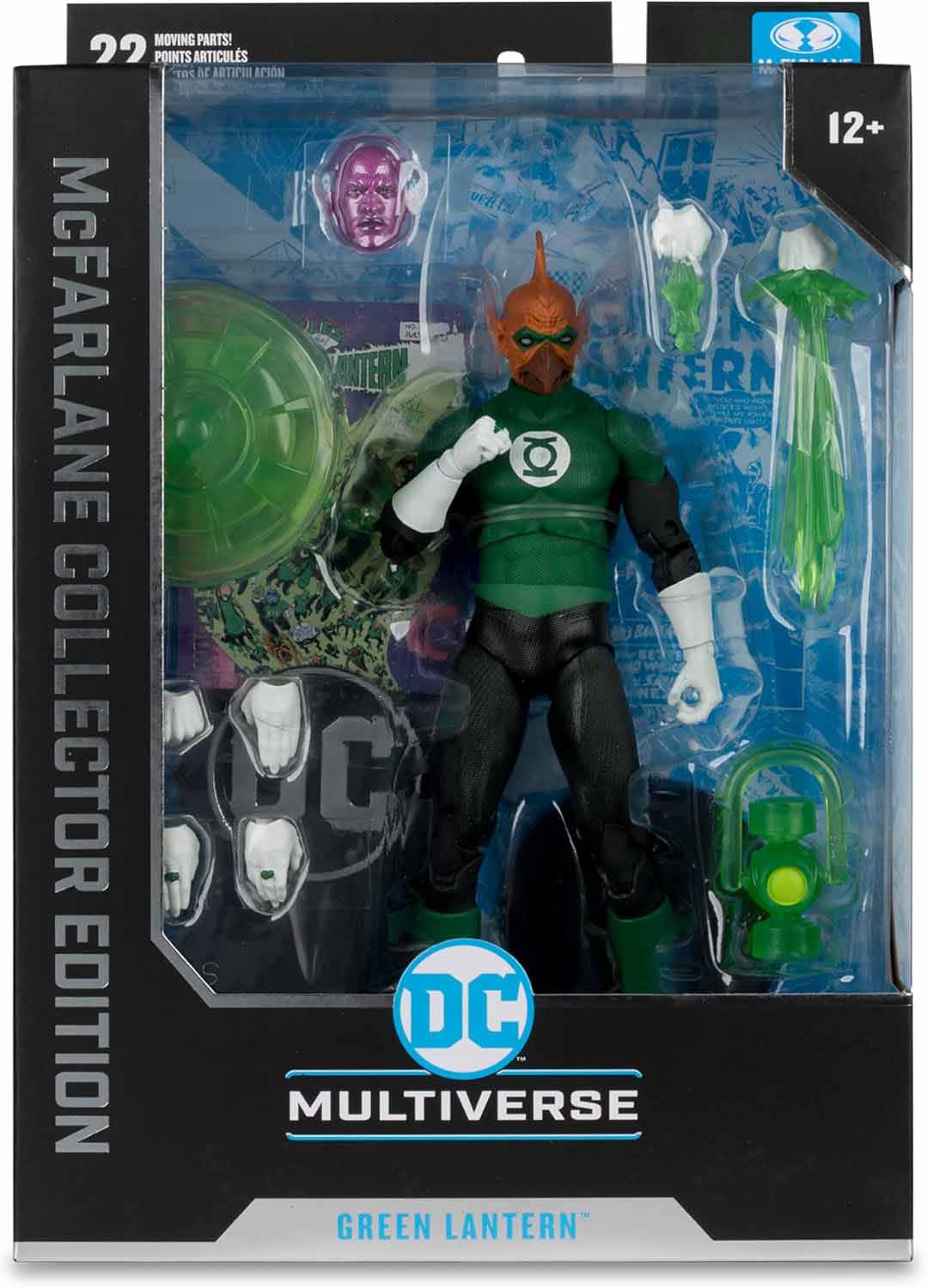 Accessories include 1 extra head portrait, 6 extra hands, energy shield, Green Lantern power battery and figure base