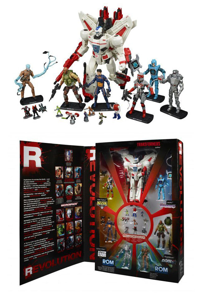 Description: When characters from different story worlds come together in a single storyline; they call it a crossover. For this event; they needed something bigger. Much bigger. When characters from this many worlds collide; it�s nothing short of a revolution. Celebrate the beyond epic IDW Revolution crossover event with this beyond epic box set featuring 16 characters from 7 story worlds: Transformers, G.I. Joe, Action Man, Micronauts; M.A.S.K. Mobile Armored Strike Kommand, Visionaries, and ROM The Spaceknight. The set features special edition IDW Revolution comic book-style packaging and comes with 31 accessories.