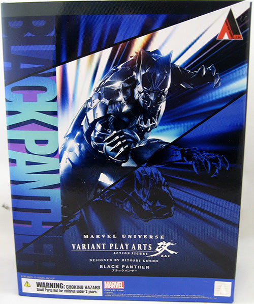 Description: From Square Enix. Marvel's iconic Black Panther joins the Variant Play Arts Kai team from Enix! In a more armored-up version of his outfit, he stands a mighty 11" tall and is fully posable for maximum action! T'Challa comes with six extra interchangeable hands, two kunai-like bladed weapons, and a special base for display.