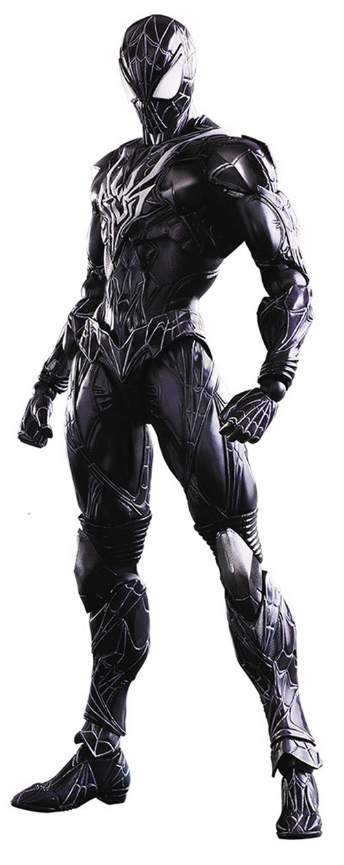 Description: From Square Enix. Spider-Man is an iconic Marvel character who has appeared in various media, including comics, animation, and film. In this new Venom-inspired limited color version of the Marvel Universe Variant, the fine coloration is created by using various subtle shades of the color black, with each shade offering a delicate difference in saturation. His joints were designed with one of the widest ranges of motion of any Play Arts KAI to date, so he can do whatever a spider can! Spidey retains his iconic slender, lithe physique and wide range of flexibility. This figure comes with various interchangeable hand pieces to recreate all kinds of Spidey-like action poses, including his signature upside-down dangling pose.