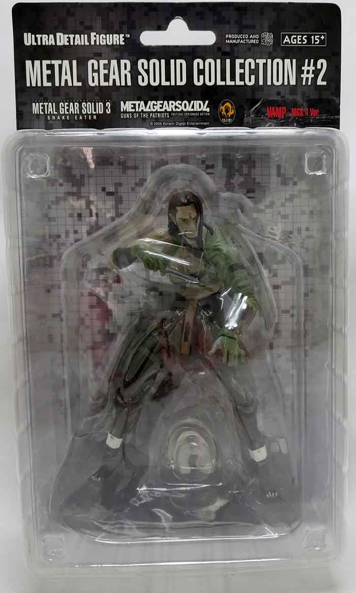 Description: It has been twenty years since the release of the original Metal Gear game for the Nintendo Entertainment System, and to commemorate the anniversary Medicom is releasing a line of figures based on the latest games in the franchise - Metal Gear Solid 3 and the brand-new MGS 4! Figures available are Boss (from MGS 3), Raiden (from MGS 4), Crouching Snake (from MGS 4), Crouching Snake "Clear" (also from MGS 4), Snake "Black Skull" Version (from MGS 3), Snake "Cold War" Version (from MGS 3), Snake "Tiger Camo" Version (from MGS 3), and Vamp (from MGS 4). Standing nearly 7" tall, these articulated figures come with accessories and weapon attachment points.