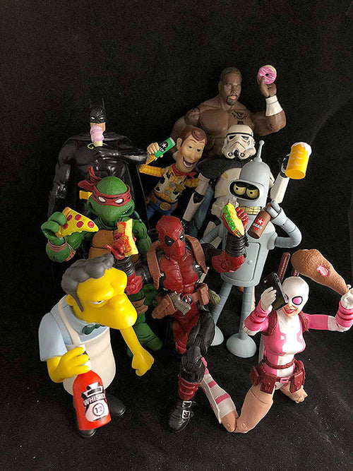Description: Set of 18 awesome accessories compatible with most six inch scale (1:12) action figures and similar scales (five inch and seven inch). Compatible with the most popular action figure lines such as Marvel Legends, Star Wars Black, DC Universe, One:12, Kaiyodo, S.H. Figures, Funko POP!, Transformers and many more similar scales. These fun accesories will add everyday items to your action figures and make them stand out, whether they be at your desk, your instagram photos, or props needed for stop motion videos or cartoons. Includes 18 fun accessories to add some fun to your action figure collection: -Shawarma (for after saving the world) -Donut -Water Bottle -Can of Soda Pop -Hot Dog -Apple -Ice Cream -Taco -Turkey Leg -Bottle of Whiskey -Banana -Chimichanga -Pizza Box -Slice of Pizza -Can of Beer (Sunday Funday) -Bottle of Beer -Mug of Ale (Welcome to Moe's) -Smartphone (For selfies!) Figures in images are shown only for scale purposes. Products is accessories only, does not include the action figures.